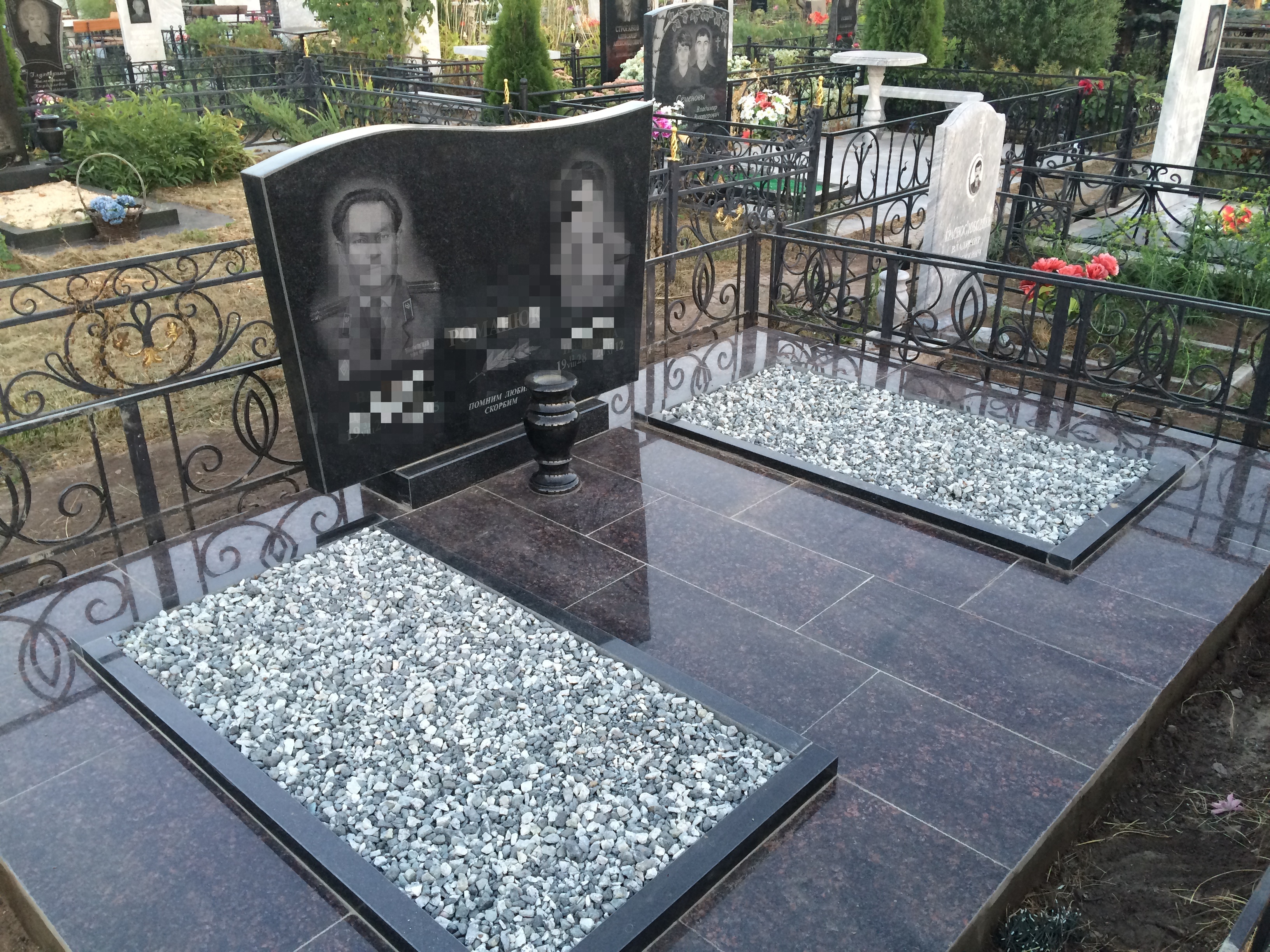В случае, если вам кажется, что установки надгробного памятника с цветником недостаточно, придать могиле законченный аккуратный вид поможет облицовка площадки мрамором или гранитом. Для такого оформления характерны: